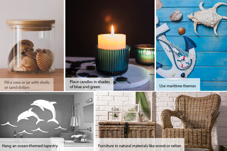 – Add nautical accessories like shells, starfish, sea glass, or driftwood.